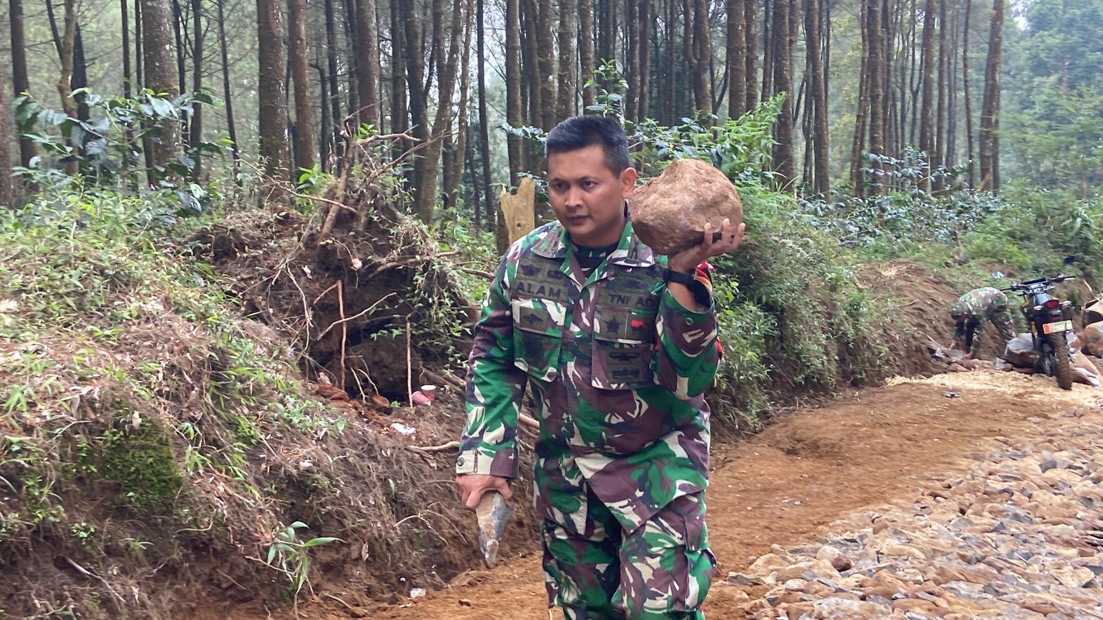 BATANG,- Komandan Kodim 0736/Batang Letkol Inf Ahmad Alam Budiman selaku Dansatgas TMMD Reguler ke 121 tidak mau kelihatan diam, begitu pula dengan Komandan Koramil 05/Reban Lettu Arh M. Iksan juga ikut bantu anggota Satgas membawa pecahan batu dari mobil losbak pengangkut batu ke warga yang bertugas menata batu di Desa Pacet Kecamatan Reban, Kabupaten Batang. Minggu (11/08/24).