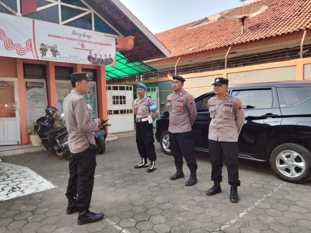 BATANG – Personel Polres Batang ditempatkan di kantor KPU dan Bawaslu untuk memastikan proses tahapan pemilu berjalan aman.