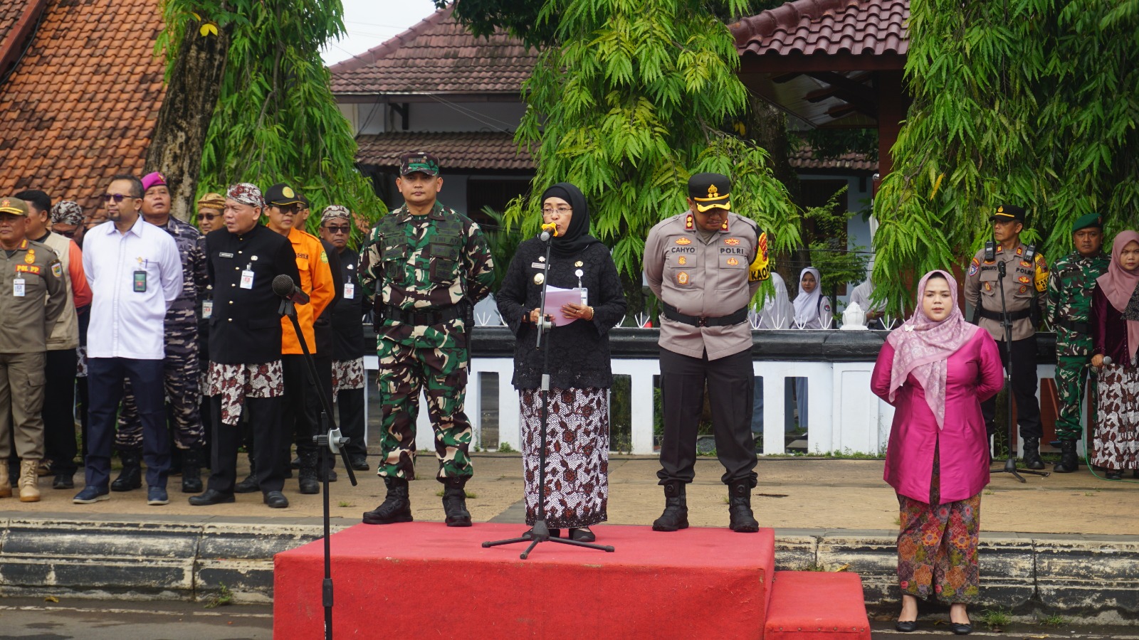 Hadir dalam kegiatan,Pj. Bupati Batang Dra. Lani Dwi Rejeki, M.M. Dandim 0736/Batang Letkol Inf. Ahmad Alam Budiman, S.E, M.I.Pol, M.Han,Kapolres Batang AKBP Nur Cahyo Ari Prasetyo, S.H., S.I.K., M.H.,Kepala Pengadilan Negeri Batang Wasis Priyanto, SH.,MH.,Kasatpol PP Batang Ir. Dwi Pranggono,Kepala BPKPAD Kab. Batang Sri Purwaningsih, S.H,Plt Kepala BPBD Kab. Batang Ulul Azmi, AP., MM ,Danpos AL Batang, Letda Mar. Marwoto. (Ant)