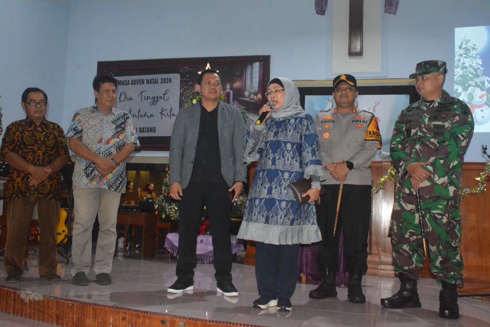 Kunjungan ini dipimpin oleh Penjabat Bupati Batang Lani Dwi Rejeki, bersama Dandim 0736/Batang Letkol Inf Ahmad Alam Budiman dan Kapolres Batang AKBP Nur Cahyo Ari Prasetyo menyambangi beberapa gereja di Kabupaten Batang yang sedang melaksanakan ibadah Misa Malam Natal, Selasa (24/12/24).