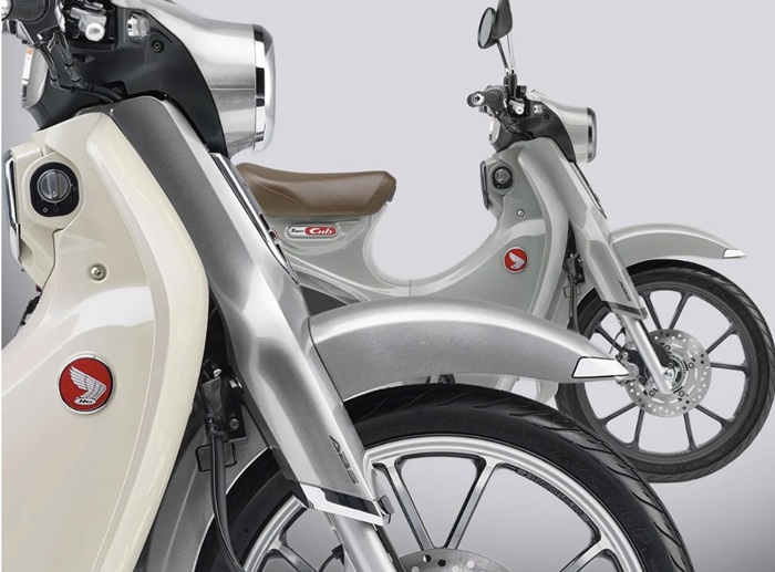 Pilihan lainnya adalah Premium Silver Metallic, yang mengusung warna perak mengilap dengan jok two-tone. Warna ini memberi kesan modern, bersih, sekaligus menonjolkan karakter teknologi khas Honda. Sementara itu, warna Pearl Bosphorus Blue tetap dipertahankan sebagai opsi bagi pecinta tampilan orisinal Super Cub.